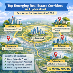 Over the past ten years Hyderabad has transformed into one of India’s fastest growing real estate markets. With the expansion of the IT sector, better infrastructure, and more job options the demand for residential and investment properties has gone up greatly. Investors are now looking out for what the next big thing is and have shifted focus to emerging real estate areas which promise strong appreciation. These areas may have lower entry levels and better long term returns.